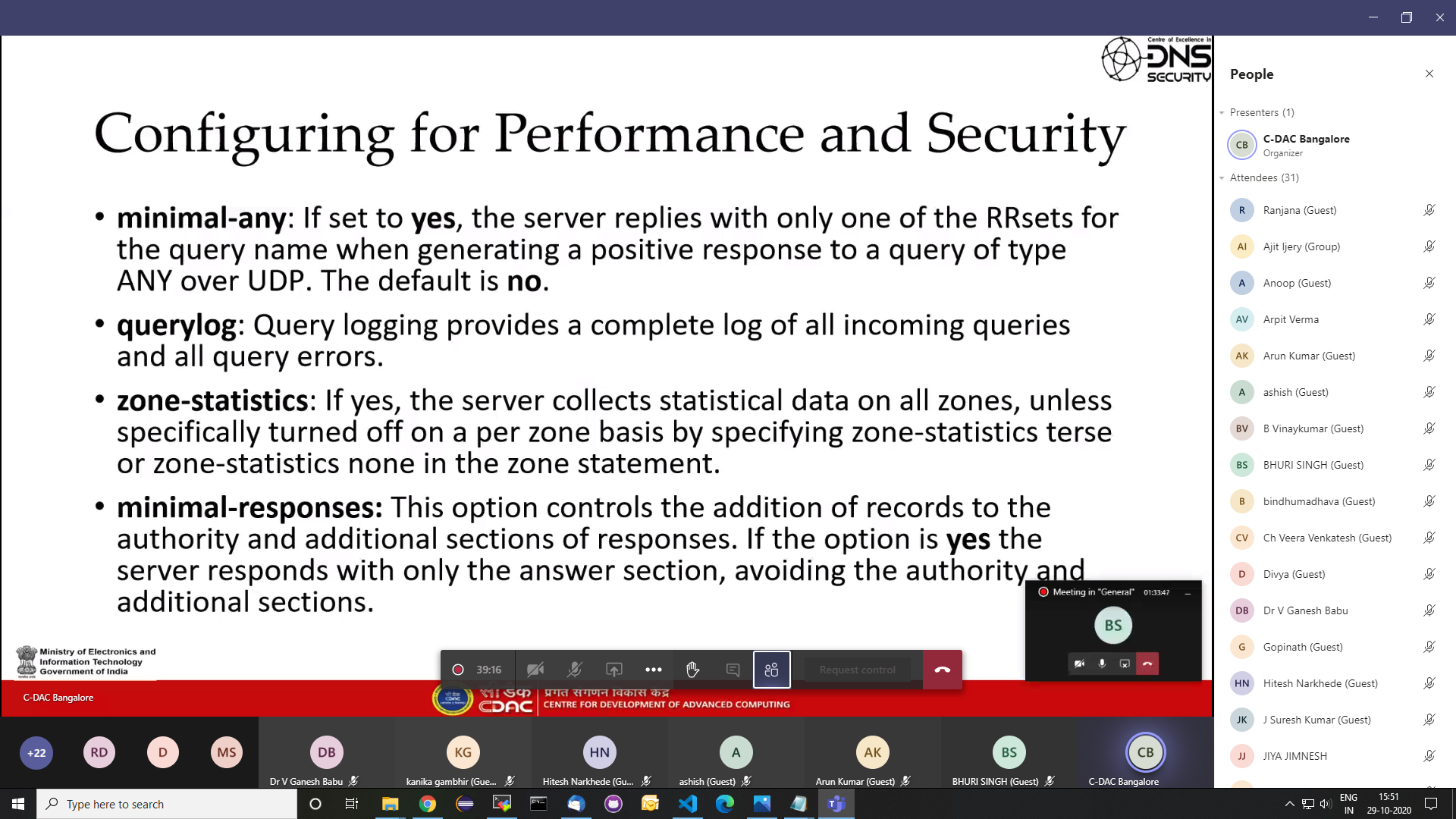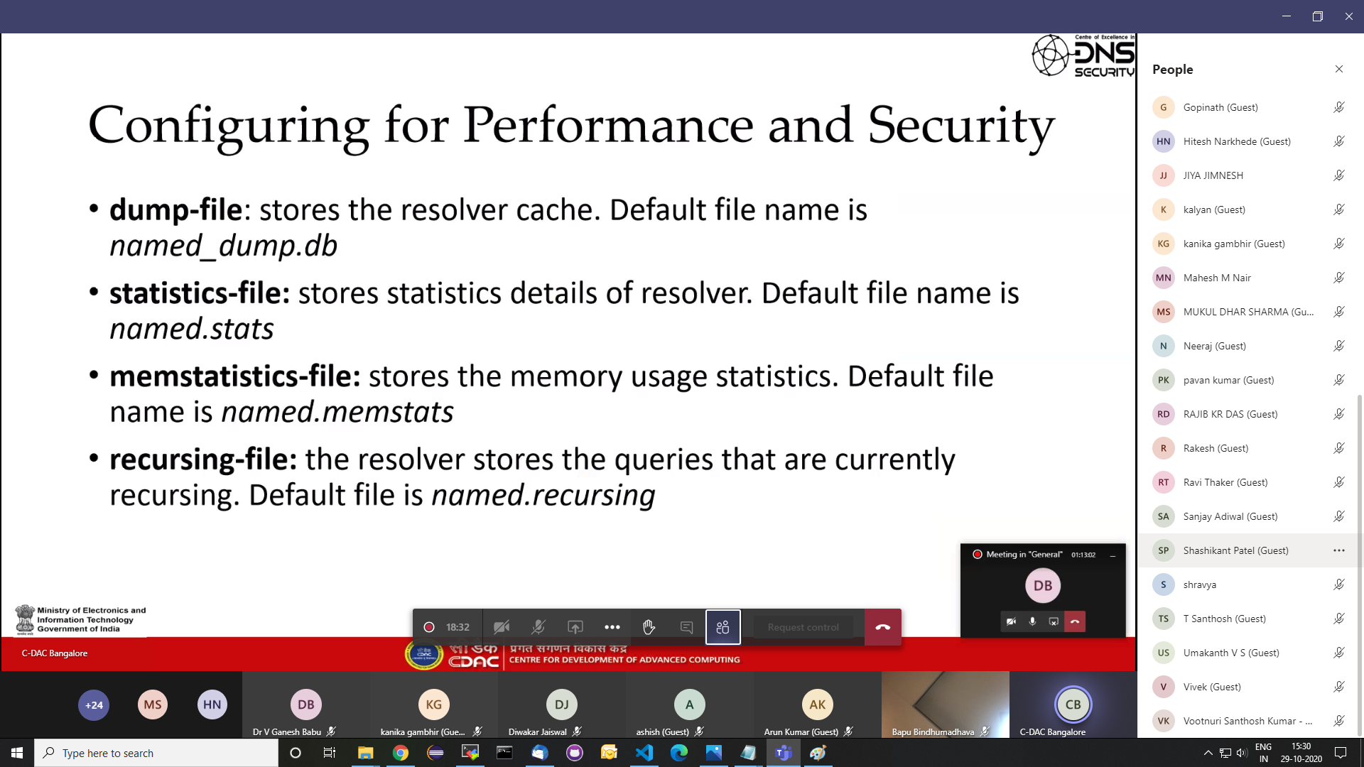 Topics Session Speaker(s) PPT Links Fine tuning DNS performance and hardening using BIND Mr. Gopinath Palaniappan , Mr. G Venkataswamy, Mr. Shubham Goyal, C-DAC Bangalore